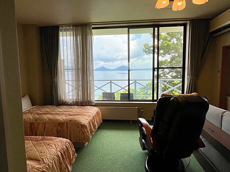 The family room offers heating, as well as a shared bathroom boasting slippers. The family room features tatami, an electric kettle, yukata, a flat-screen TV, as well as lake views. The unit has 2 beds.